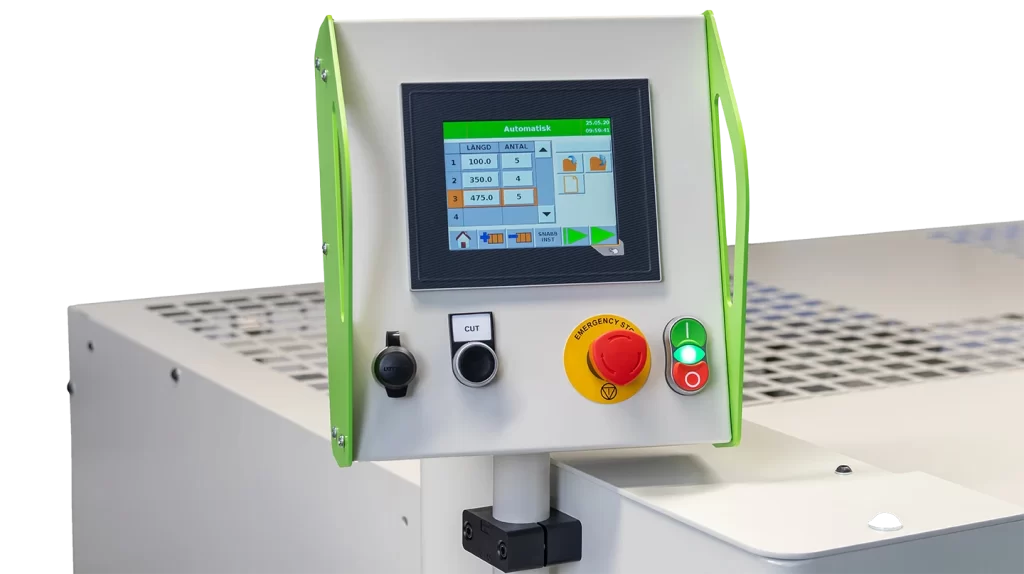 - 750mm oder 1000mm motorisierter Hinteranschlag im Einzel- oder Programmmodus.