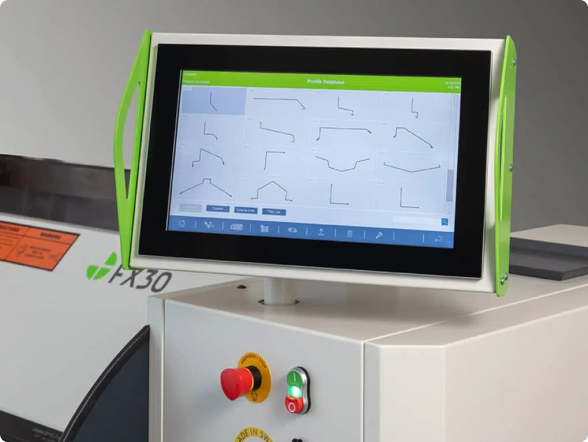 Die meisten unserer CIDAN-Schwenkbiegemaschinen sind standardmäßig mit dem ProLink Steuerungssystem ausgestattet. Die Maschinen der F-Serie werden standardmäßig mit dem EasyLink-Steuerungssystem geliefert, können jedoch auch mit einer ProLink Steuerung ausgestattet werden. Die ProLink Steuerung ist standardmäßig für die Modelle F, FS und FX erhältlich. Wir bieten in der Grundausstattung einen 15,6-Zoll-Bildschirm, der direkt an der Maschine installiert ist. Optional können ein 18,5-Zoll- oder ein 21,5-Zoll-Breitbildschirm, der an einem schwenkbaren Arm montiert ist, geliefert werden.